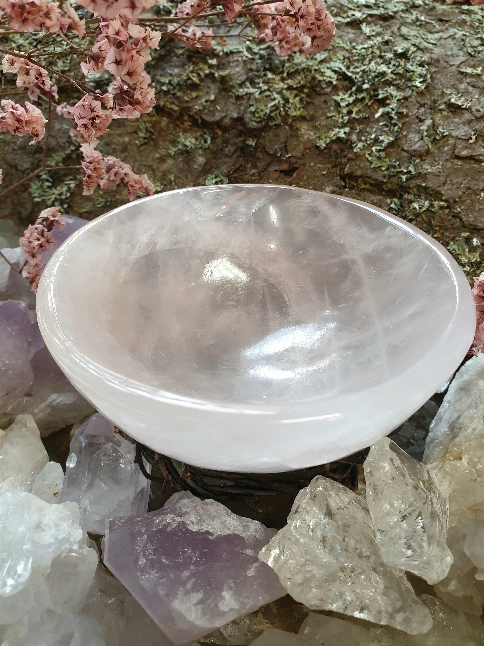 Чаша выполнена из цельного розового кварца, вручную.