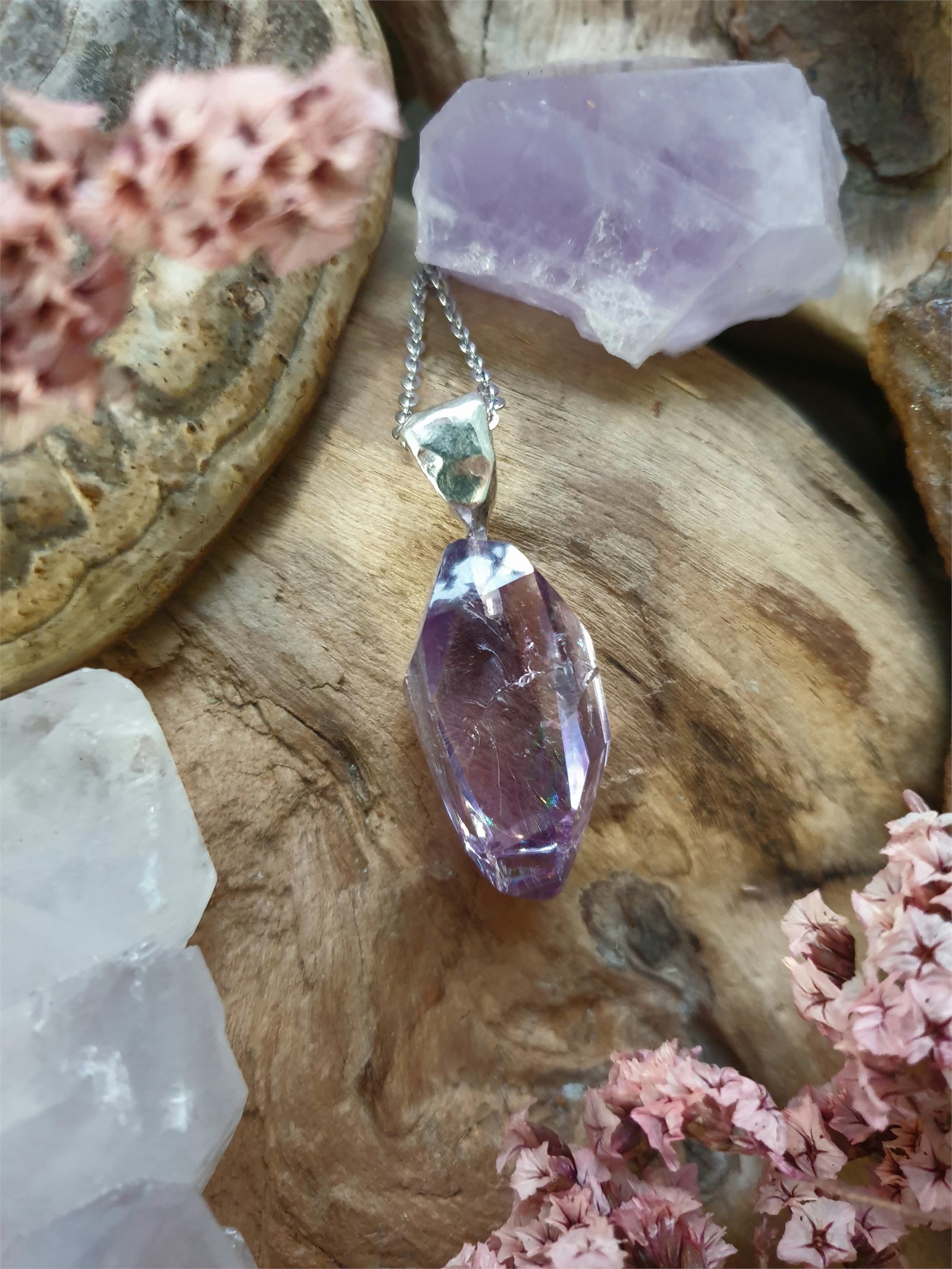Тонкий кристалл на серебряной цепочке — твой амулет и помощник. Энергия аметиста всегда с тобой, рядом, у сердца.